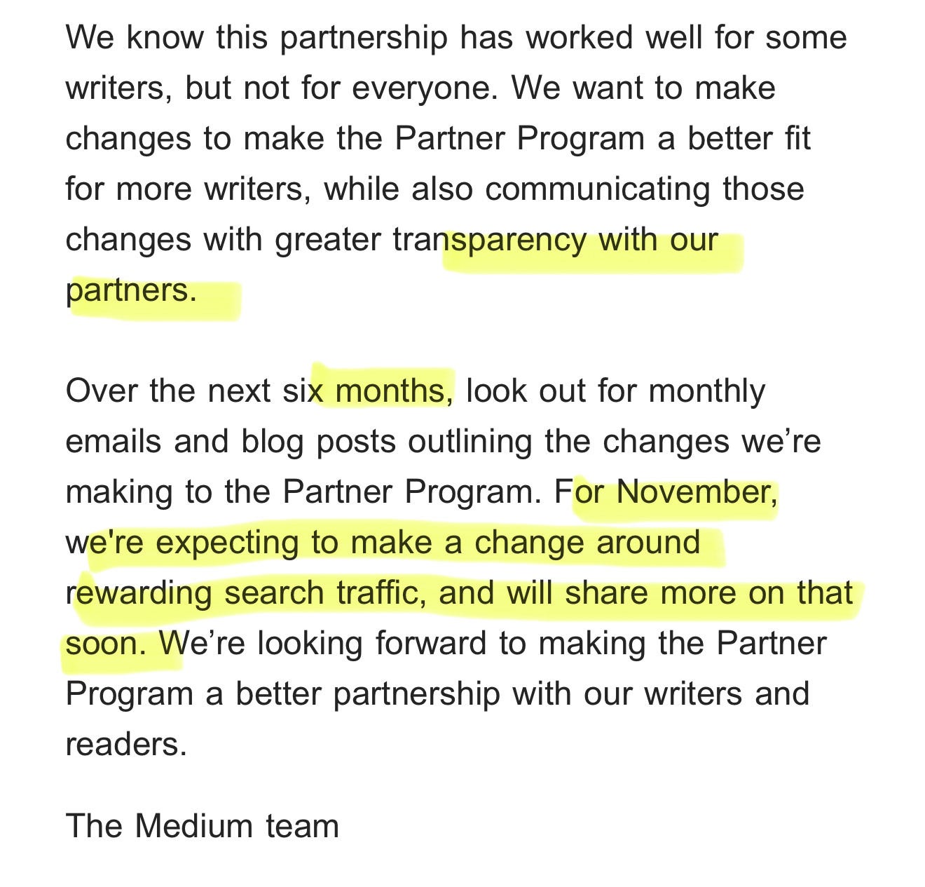 Medium also wrote that further changes would be announced in November around rewarding search traffic.